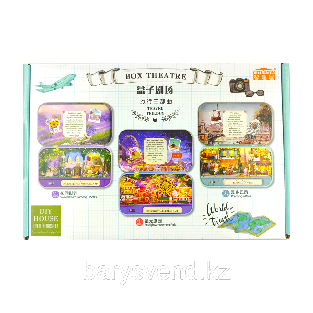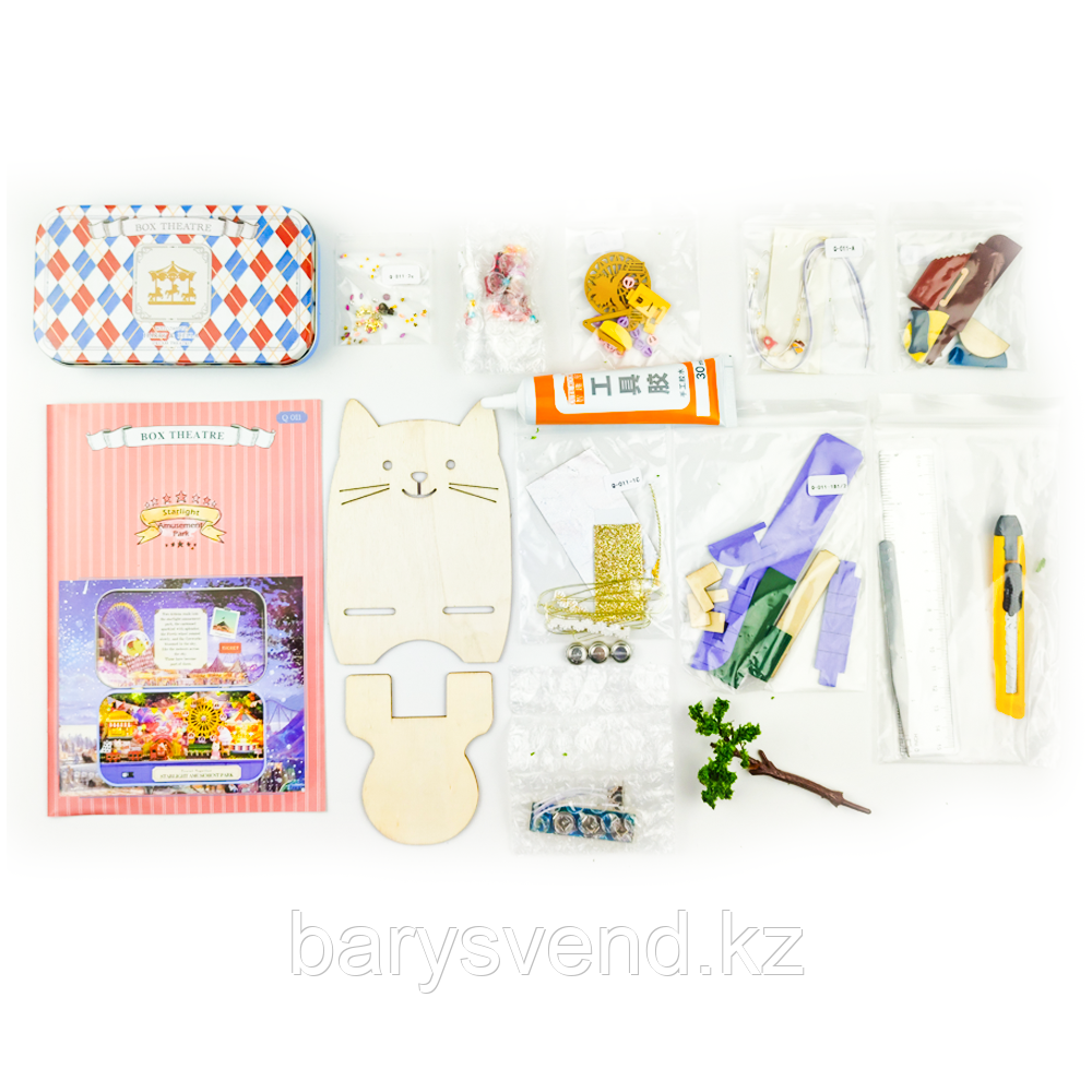 В наборе все нужные детали для сборки, специальный клей, иллюстрированная инструкция на русском языке, металлическая шкатулка, пинцет, уютная подсветка, батарейки, фигурки зайчиков Гарри и Беллы, стильная деревянная подставка. Все детали набора упакованы в разноцветную коробку 23x15x6 см. Соберите своими руками небольшой рождественский домики - шкатулку 140х30х160 мм (размер в открытом виде; в закрытом – 140x80 мм) или подарите набор подруге, маме, дочери, близкому человеку! Румбокс от Cute Room – отличная идея для подарка. Сборка румбокса – прекрасная медитация, позволяющая отключиться от повседневной рутины. Рукоделие доставит лишь позитивные эмоции, ведь всё необходимое будет под рукой. Готовый домик можно использовать в качестве ночника благодаря уютной подсветке. Миниатюра Yarvita создаётся шаг за шагом: собирается деревянная мебель и детали интерьера из ткани, синтепона, бусинок, проволоки, кружева и т.д. Расставляются кукольные цветы, книги, посуда, приклеиваются обои, проводится освещение. В итоге получится реалистичный макет домика.