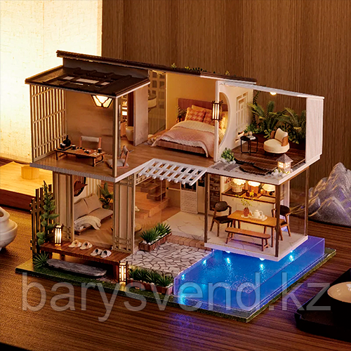 В наборе все нужные детали для сборки, два тюбика специального клея, иллюстрированная инструкция на русском языке, пинцет, музыкальный механизм, уютная подсветка, прозрачный купол для защиты от пыли. Все детали набора упакованы в разноцветную коробку 33x28x8 см. Соберите своими руками роскошный калифорнийский домик 290x240x235 мм или подарите набор подруге, маме, дочери, близкому человеку! Румбокс от Cute Room – отличная идея для подарка. Сборка румбокса – прекрасная медитация, позволяющая отключиться от повседневной рутины. Рукоделие доставит лишь позитивные эмоции, ведь всё необходимое будет под рукой. Готовый домик можно использовать в качестве ночника, а музыкальный механизм, входящий в набор, сделает получившуюся композицию еще более душевной. Миниатюра Yarvita создаётся шаг за шагом: собирается деревянная мебель и детали интерьера из ткани, синтепона, бусинок, проволоки, кружева и т.д. Расставляются кукольные цветы, книги, посуда, приклеиваются обои, проводится освещение. В итоге получится реалистичный макет домика.