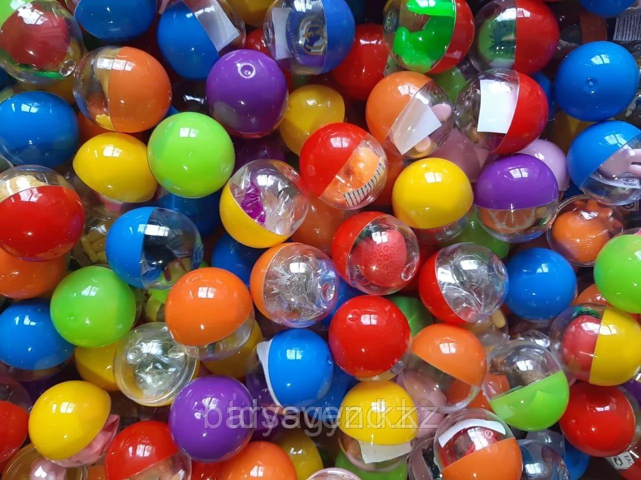 Игрушки упакованные в прозрачные капсулы диаметром 34х30 мм с цветными крышками 250шт/уп.