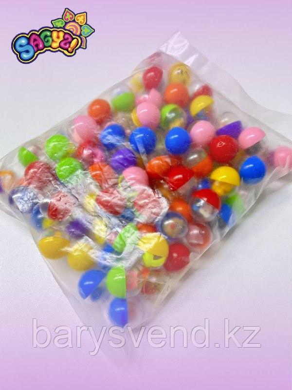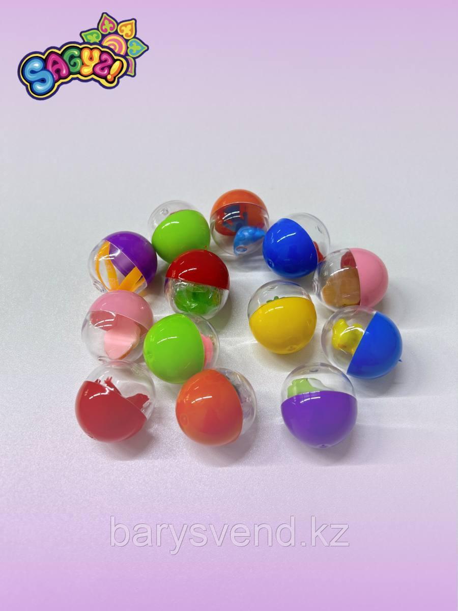 Игрушки упакованные в прозрачные капсулы диаметром 34х30 мм с цветными крышками 100шт/уп.