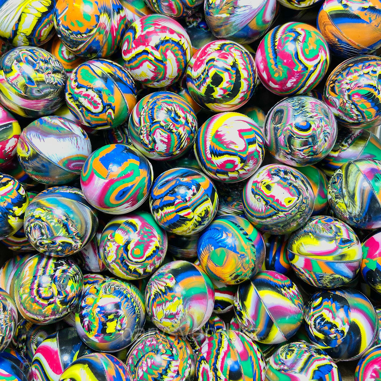 Яркий микс из мячей 25 мм с неповторимым дизайном в виде разноцветных завихрений и разводов. Каждый мяч уникален.