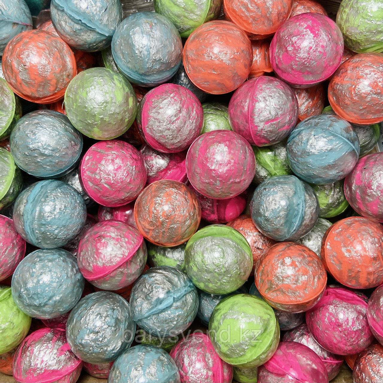 Яркий микс из мячей 25 мм с неповторимым дизайном в виде разноцветных завихрений и разводов. Каждый мяч уникален.